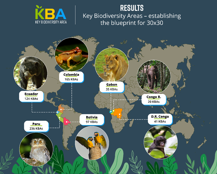 - 719 Key Biodiversity Areas (KBAs) identified across seven countries in the Tropical Andes and Congo Basin regions.