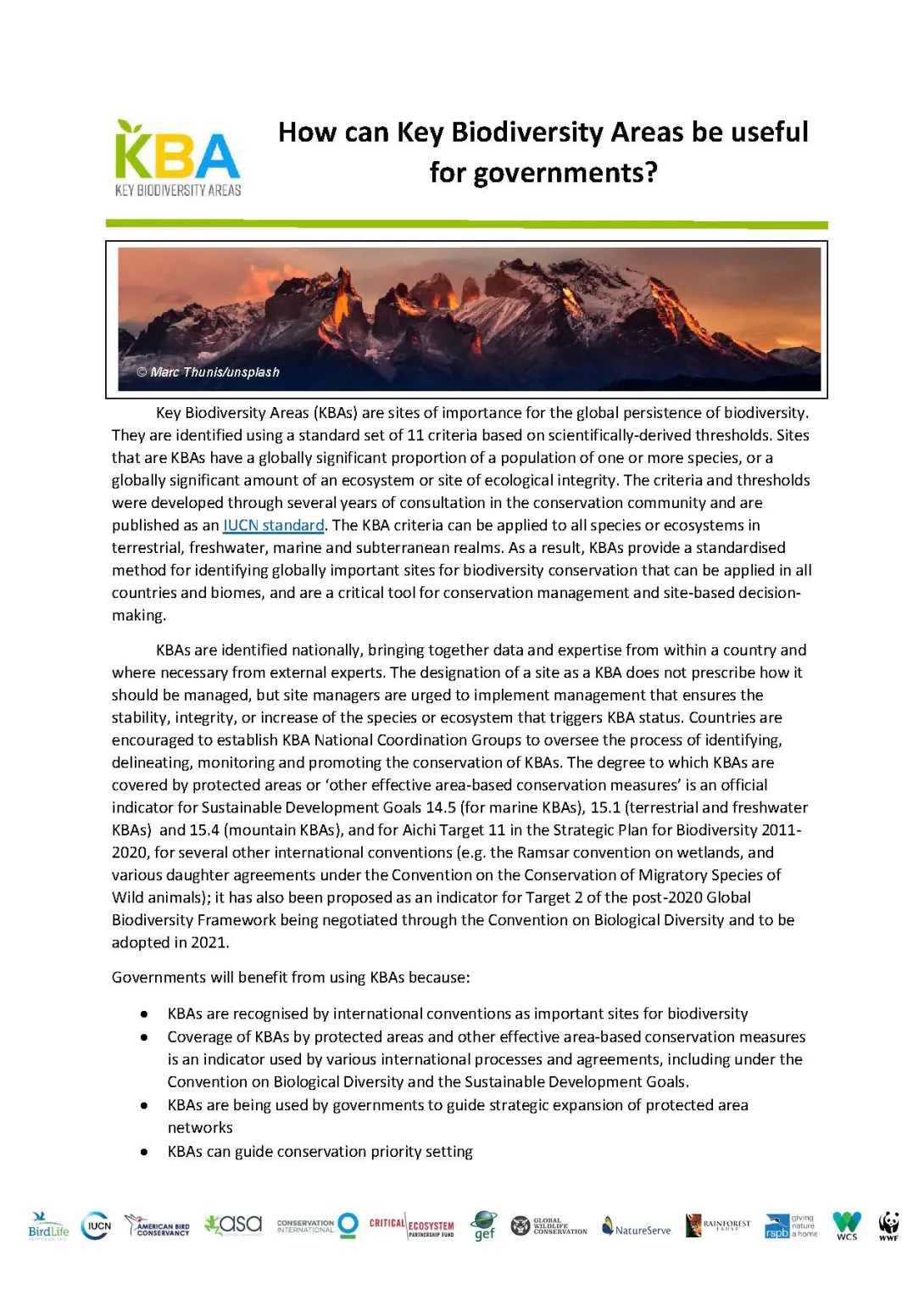 Identifying KBAs is a cornerstone of any effective national spatial conservation plan, as the KBA criteria ensure a comprehensive assessment that covers multiple taxonomic groups, ensuring an array of biodiversity elements are represented. Applying the criteria ensures that where a country has a responsibility for a globally significant population of a species or part of an ecosystem, these are identified and incorporated in national spatial plans.